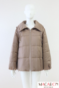 上品な光沢感のあるポリエステル素材、中綿入りの暖かいショートコート(ブルゾン)です。2019年商品、フード取り外し可能 |