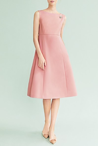 滑らかな肌触りのポリエステルブレンド素材のシンプルフレアワンピースです。2021年商品