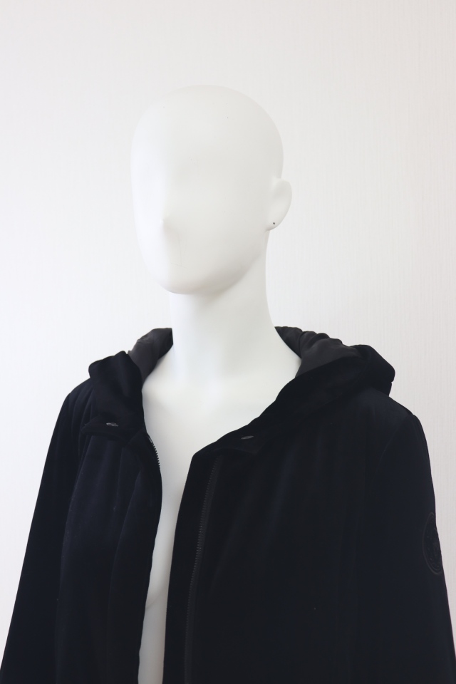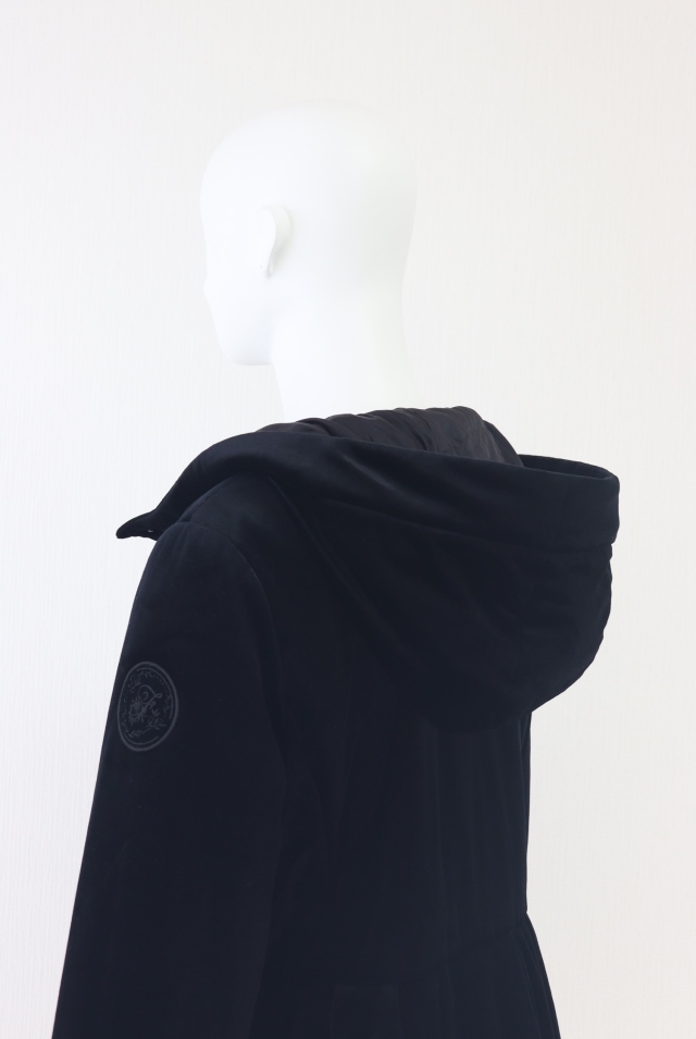 中綿入りのベロア素材ショートコート(ジャケット)です。2021年商品、フード取り外し不可 |