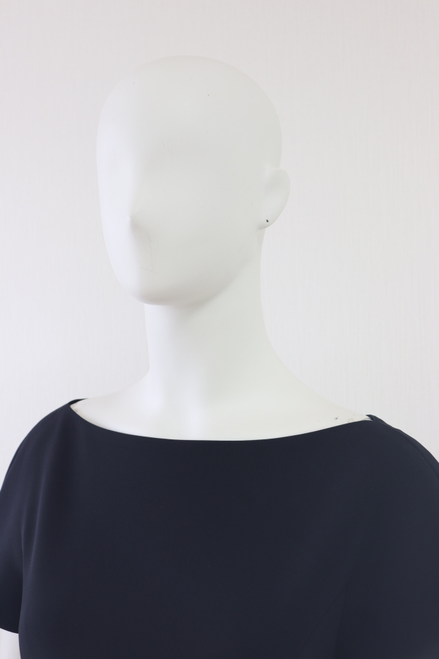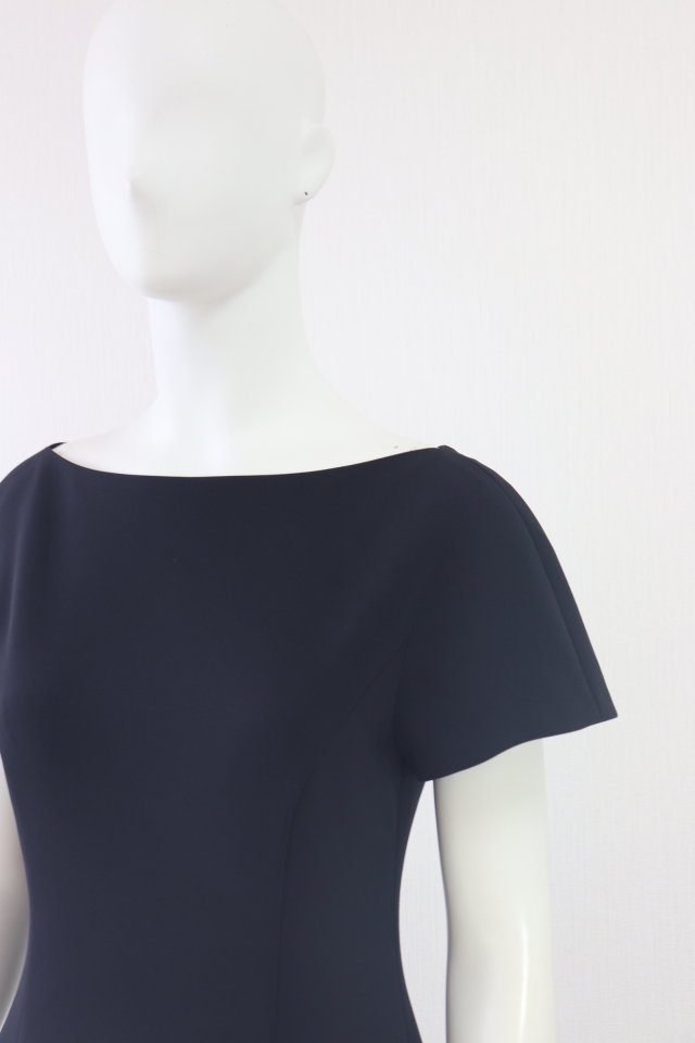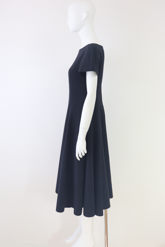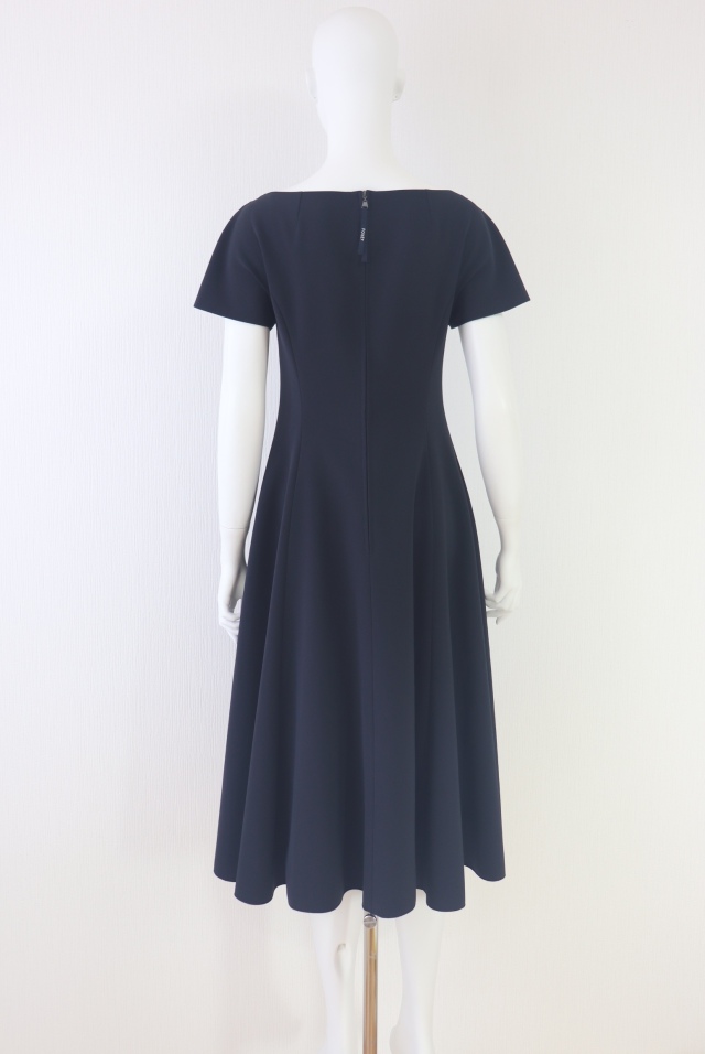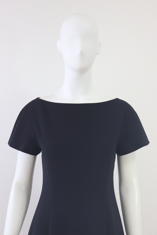 顔周りがすっきり見えるボートネックのフィット&フレアワンピースです。2022年商品、ホームクリーニング可能 |