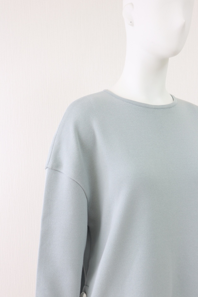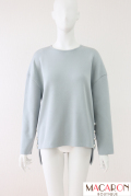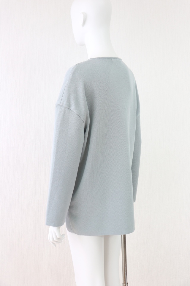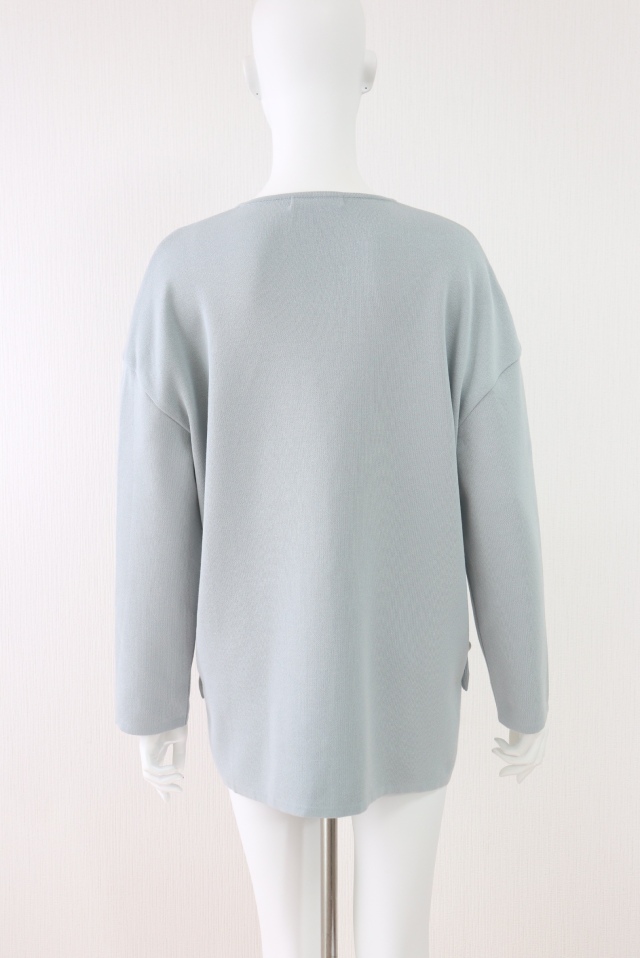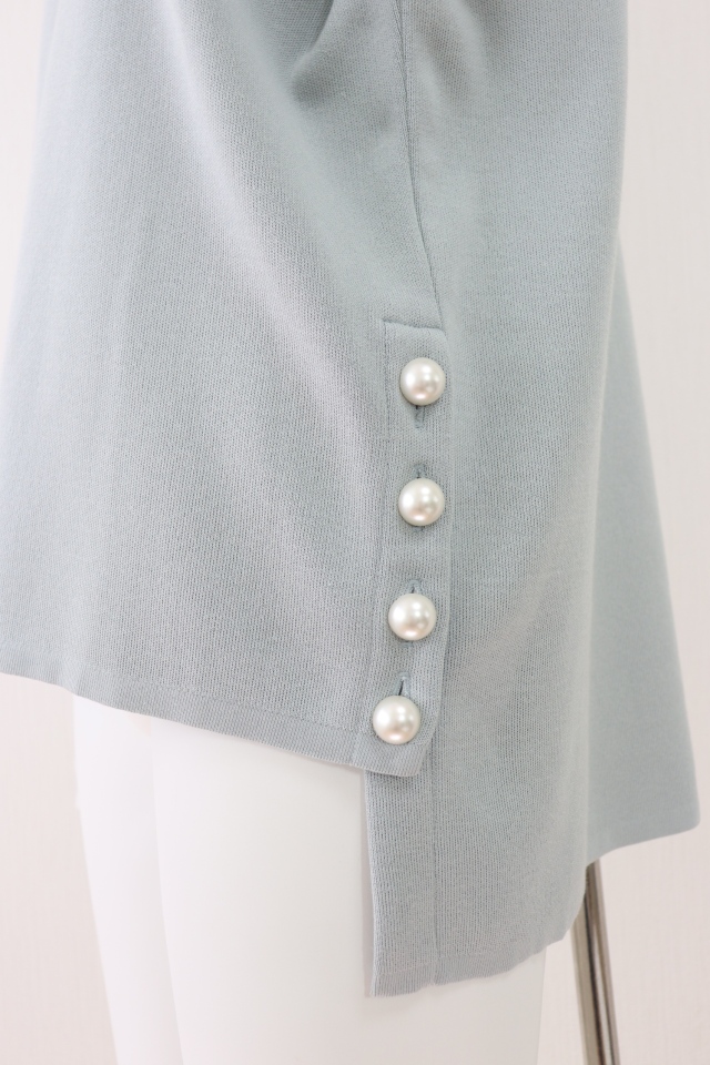 | コメント | サイドの大きめパールがポイント、ドロップショルダーに後ろ長めのゆったりシルエットのニットプルオーバーです。ホームクリーニング可能、2021年商品 |
