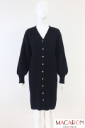 パールボタン&模様編みデザインのウールブレンドロングカーディガンです。ドロップショルダータイプ。2021年商品 |