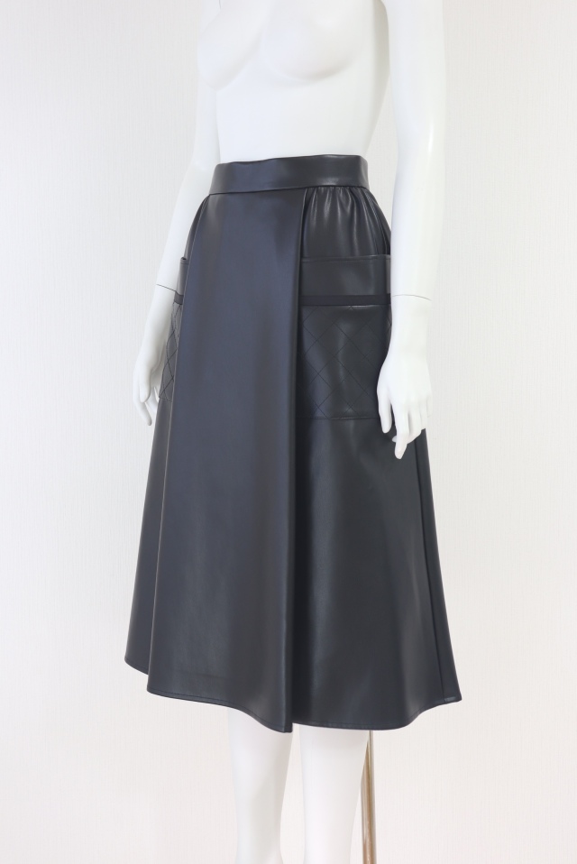 両サイドの大きめポケットがポイントのフェイクレザースカートです。2023年商品、ホームクリーニング可能 |