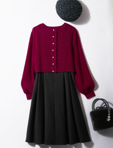 後ろ姿のパール&フリルが可愛いウールニットプルオーバー(セーター)です。2024年商品 |