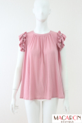 軽くて滑らかなセルロースコットン素材、袖のパール&フリルが可愛いプルオーバー(トップス)です。2025年商品。ホームクリーニング可能、単品注文に限りレターパックライト発送可能 |