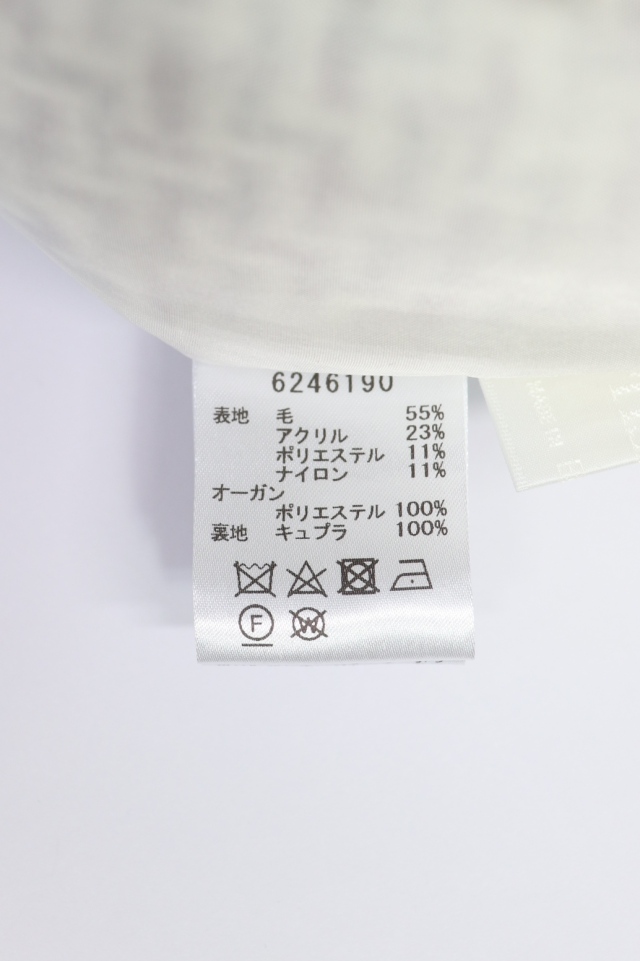 毛55% アクリル23% ポリエステル11% ナイロン11% /オーガン ポリエステル100% /裏地 キュプラ100% |