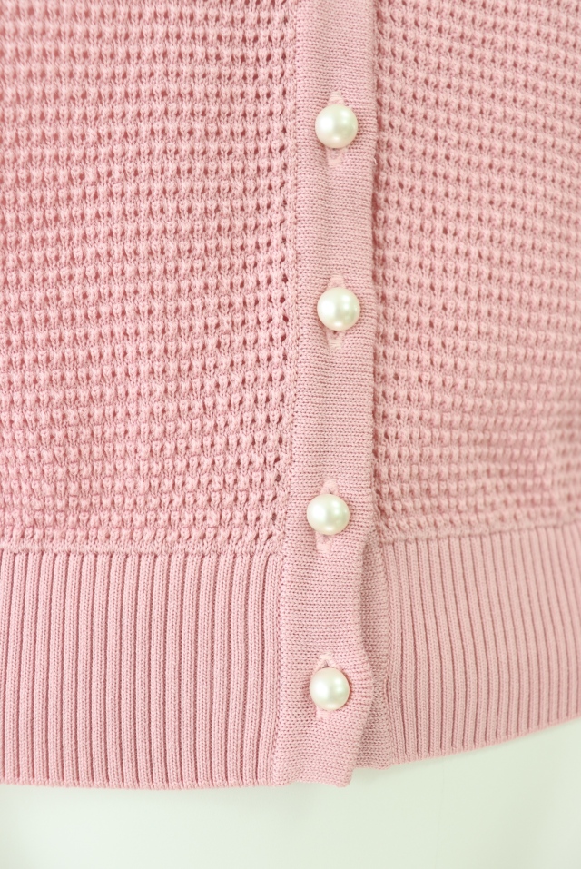 フロントのメッシュ生地やパールボタンが特徴の長袖カーディガンです。2023年商品 |
