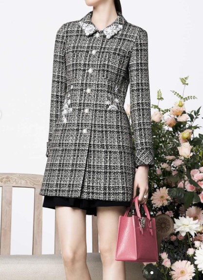 | コメント | 襟やポケットに刺繍レースをあしらったロング丈のツイードジャケットです。2023年商品 |