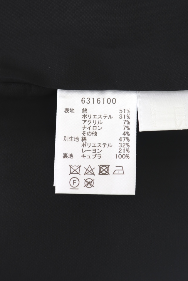綿51% ポリエステル31% アクリル7% ナイロン7% その他4% /別生地 綿47% ポリエステル32% レーヨン21% /裏地 キュプラ100% |