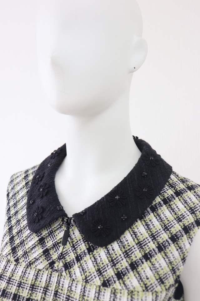 | コメント | フラワーモチーフをあしらった黒襟がポイントのツイードワンピースです。2023年商品 |