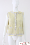 お花のコサージュが可愛いニットベストです。ブラウスなどに重ね着するのもお勧め。2023年商品 |