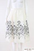 フラワー刺繍が素敵な軽やかなポリエステルレーヨン素材のフレアスカートです。2023年商品、ホームクリーニング可能