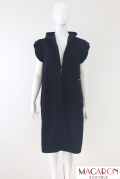 肩のフリルが可愛いアセテートブレンドニットのフード付きジレです。2023年商品。フック一か所あり |