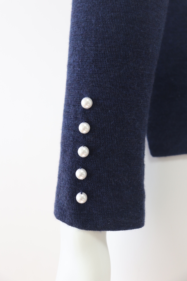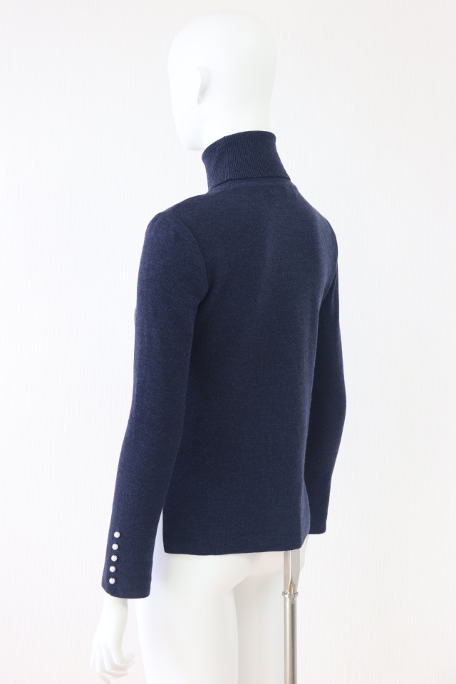 袖の5粒並んだパールがポイント、着回しに便利なタートルネックのウールセーターです。ホームクリーニング可能、2023年商品 |