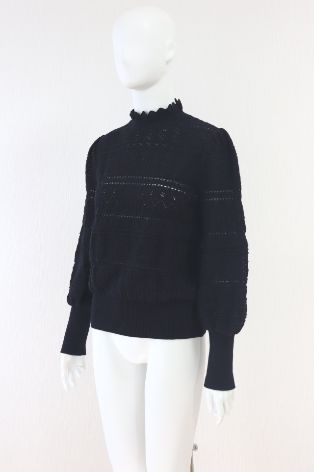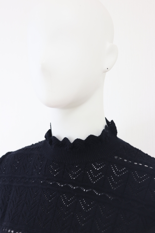 透け感のあるウールのニット編みプルオーバーです。2023年商品 |