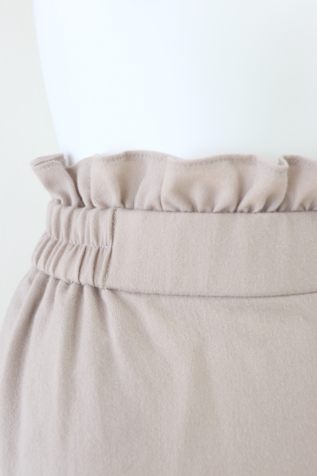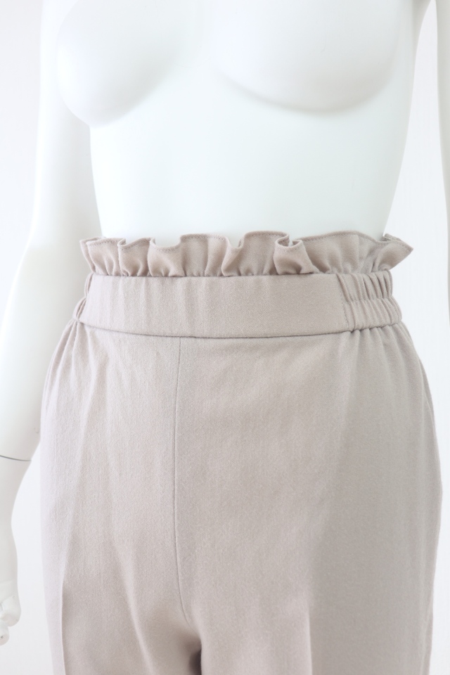 ウエストのフリルがフェミニンなウール素材のテーパードパンツです。2023年商品 |