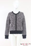 黒×白×ピンクの糸を織り込んだニットツイードカーディガンです。ダブルジップアップ仕様。2024年商品 |